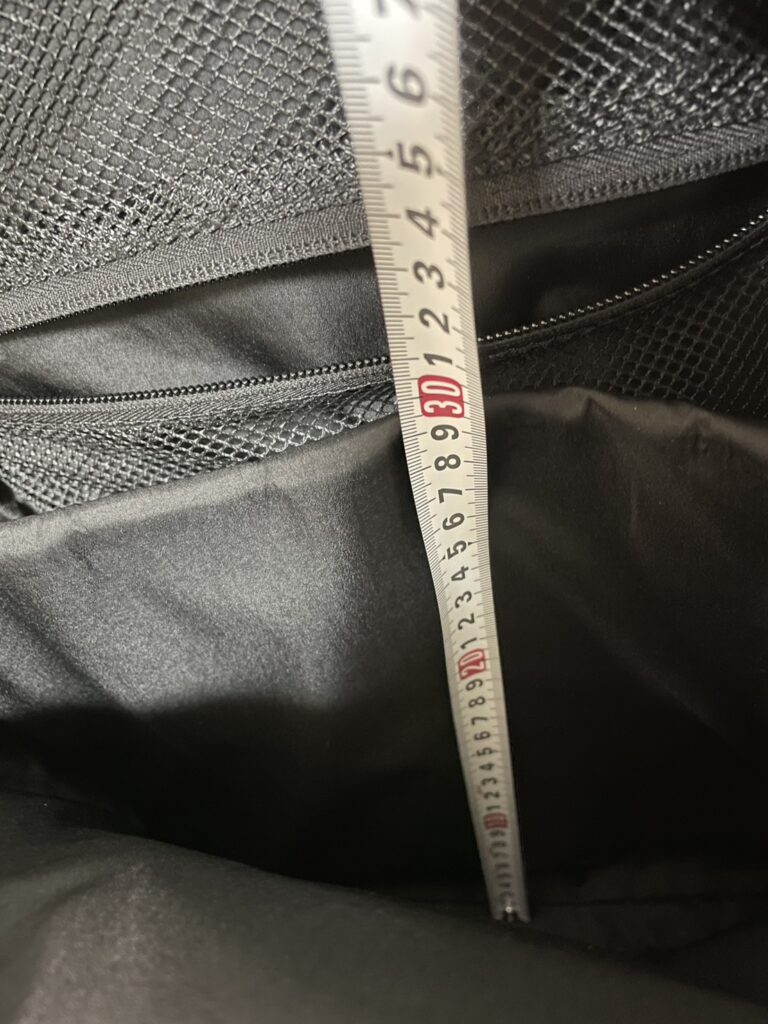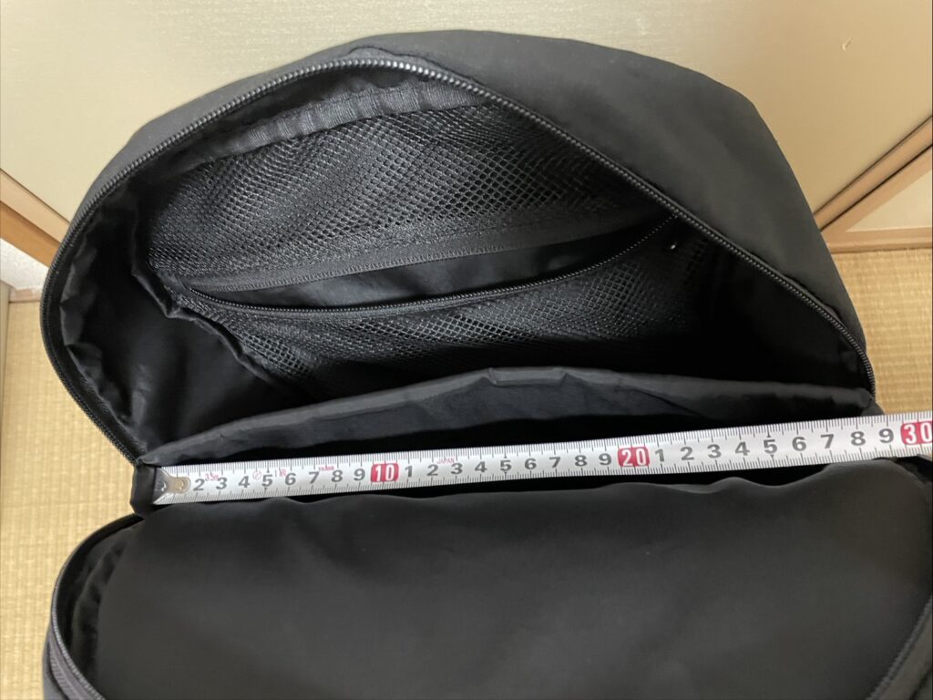 ちなみに、大きめのポケットのサイズは下記のようになります。高さが約30センチ、横が約28~29センチ程度なので、14インチのパソコンには対応できます。