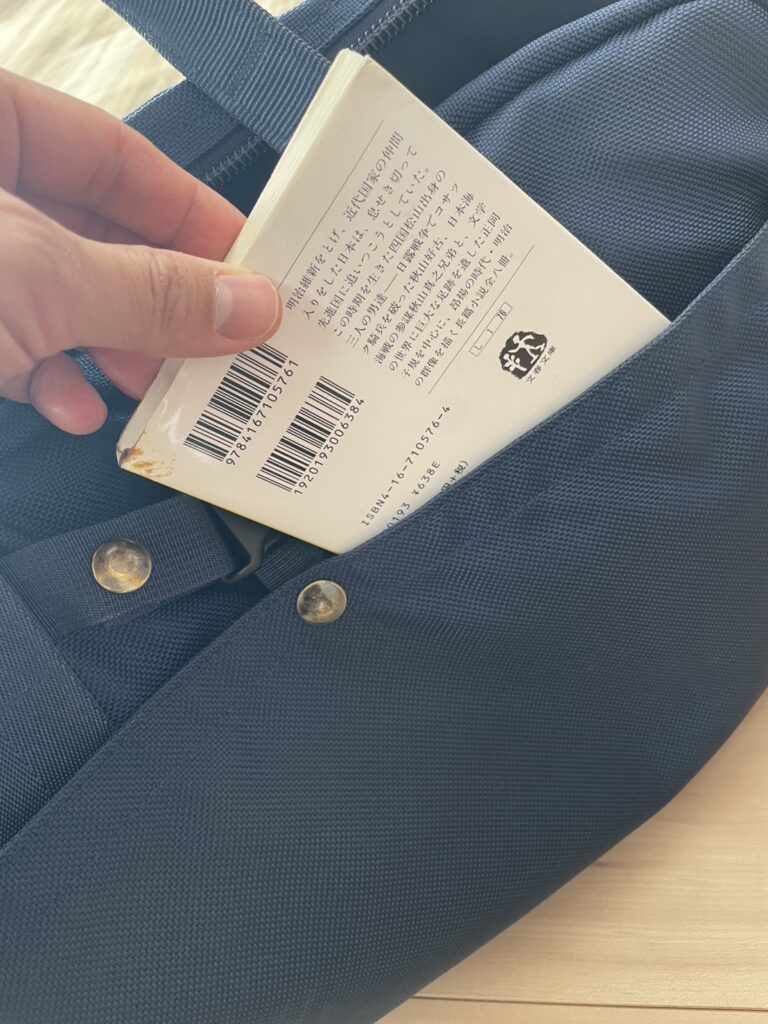 マチ幅は大きくないバッグですが、外側にポケットがある分、成立はしやすいです。荷物を多めに入れていると余計に安定感はありますね。