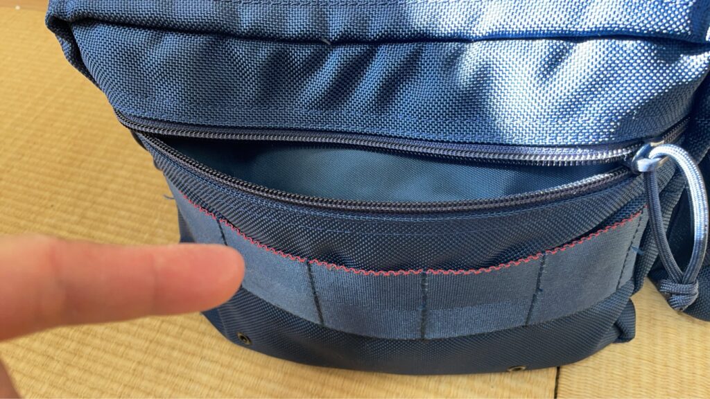 また、スマホや定期入れ、本や新聞が出し入れ出来る小スペースが付いています。ファスナーを開けなくて良いので、めんどくさがりの僕には重宝してます。